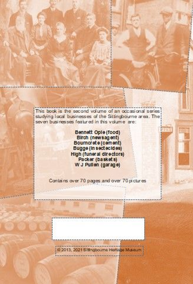 The second volume of an occasional series which looks at local businesses of the Sittingbourne area. The businesses featured in this volume are Bennett Opie (food), Birch (newsagents), Bournecrete (cement), Bugge (insecticides), High (funeral directors), Packer (baskets) and W J Pullen (garage).